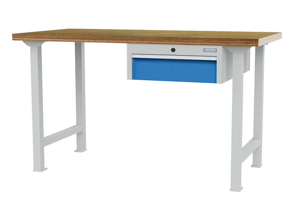 The modular design allows for variable arrangement of the drawer cabinets or workbench bases