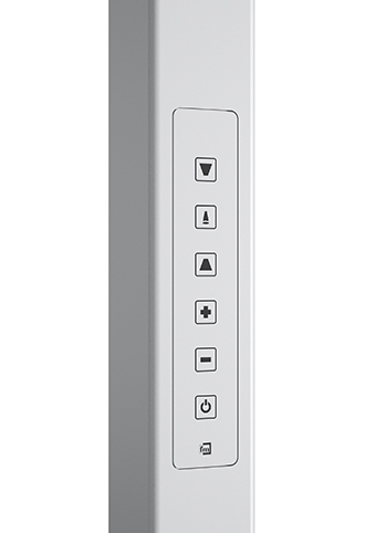Die neu entwickelte aktive Lichtstärkenregulierung „Luminosity Range Control“ sorgt dafür, dass sich der Ausleuchtungswinkel und die Beleuchtungsstärke automatisch der Arbeitshöhe an Steh-Sitz-Tischen anpassen. Vom Nutzer eingestellte individuelle Lichtszenarien bleiben auf jeder Tischhöhe erhalten.