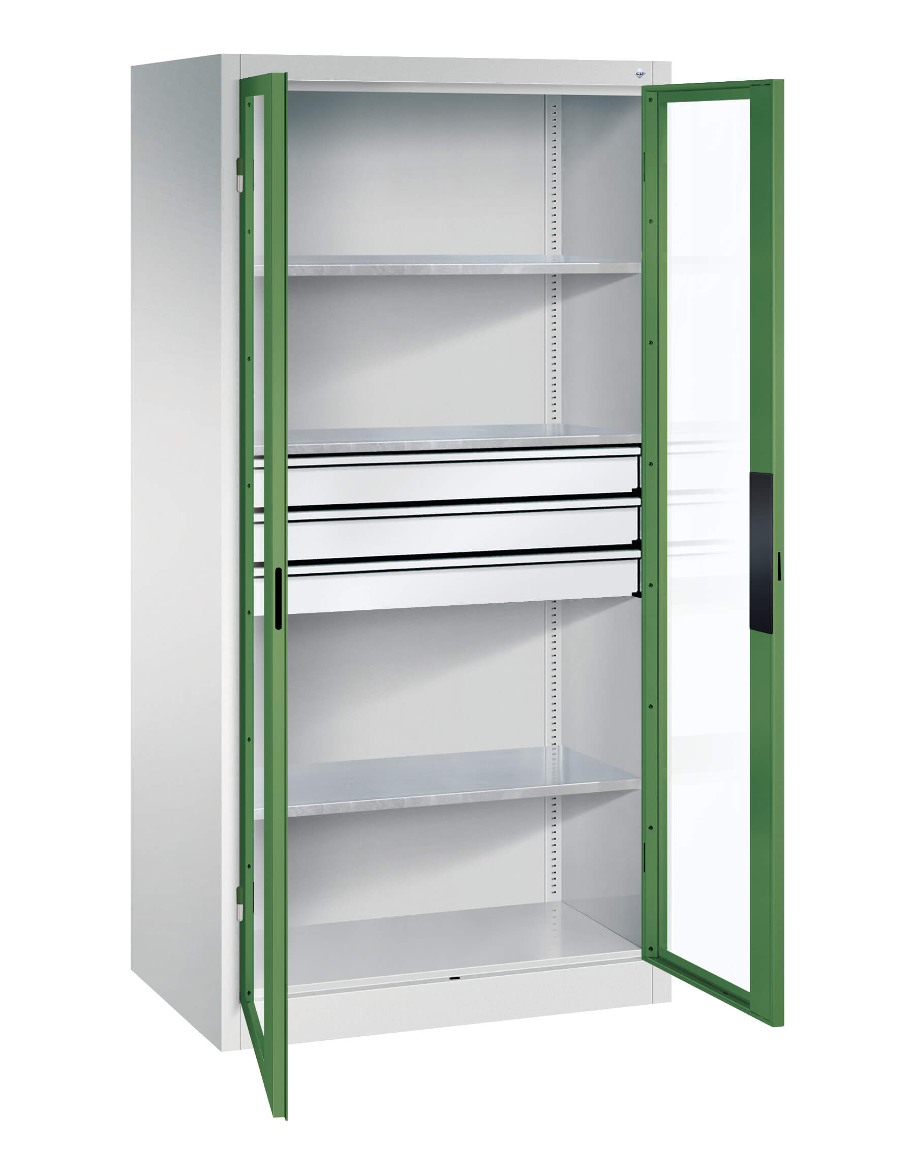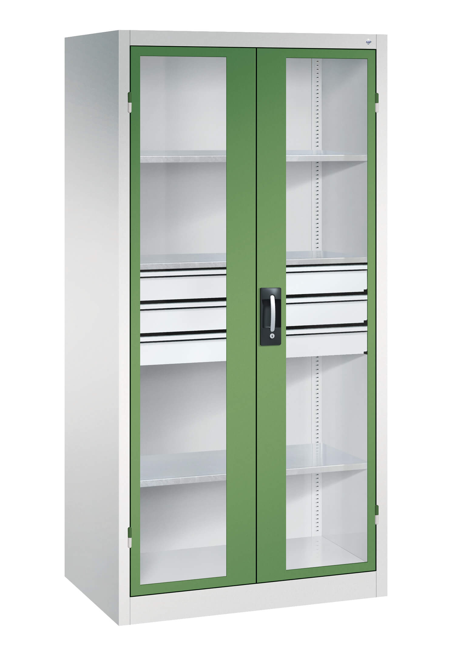 | + | Doors with viewing window for direct cabinet access, time and cost savings through better organization and overview |