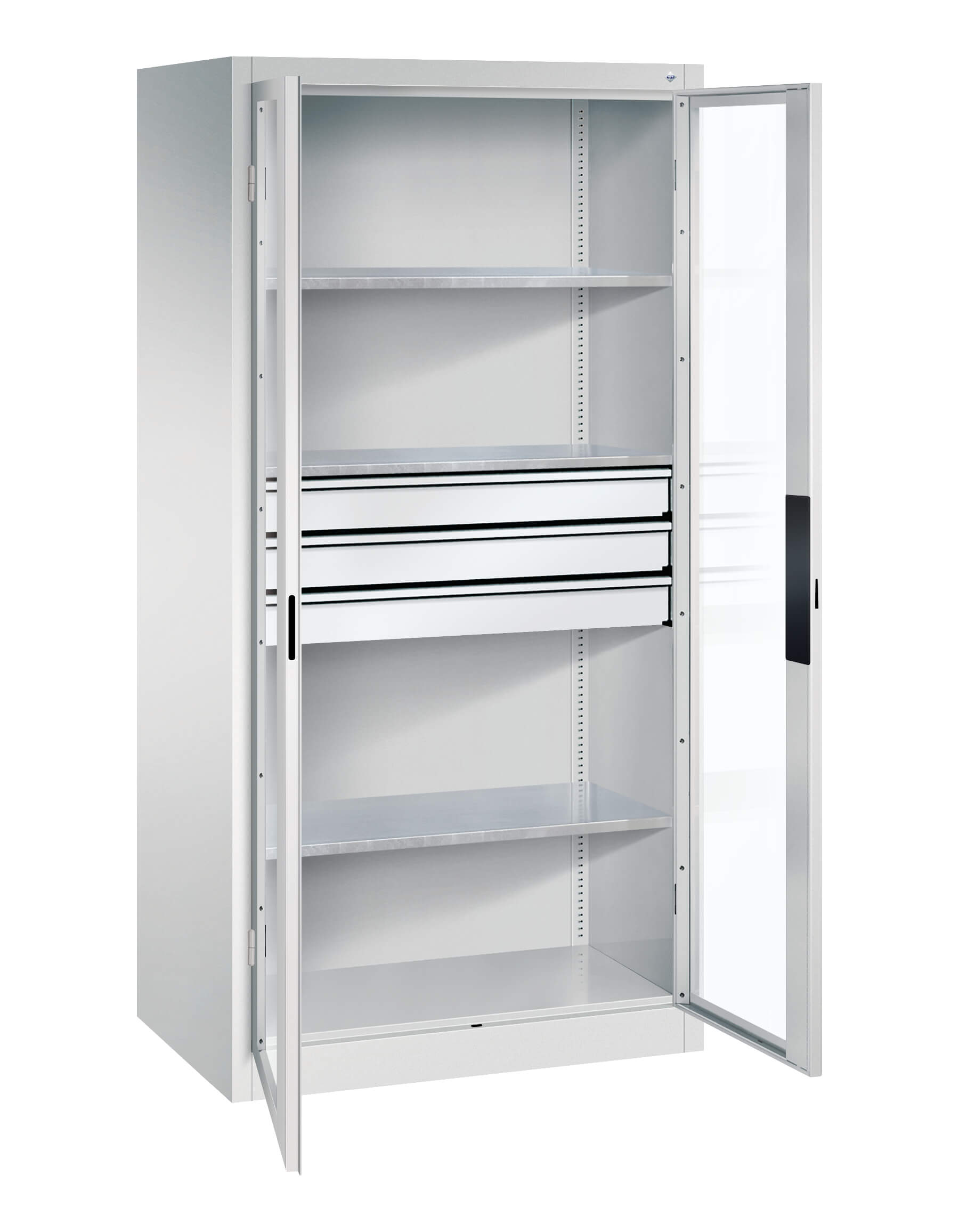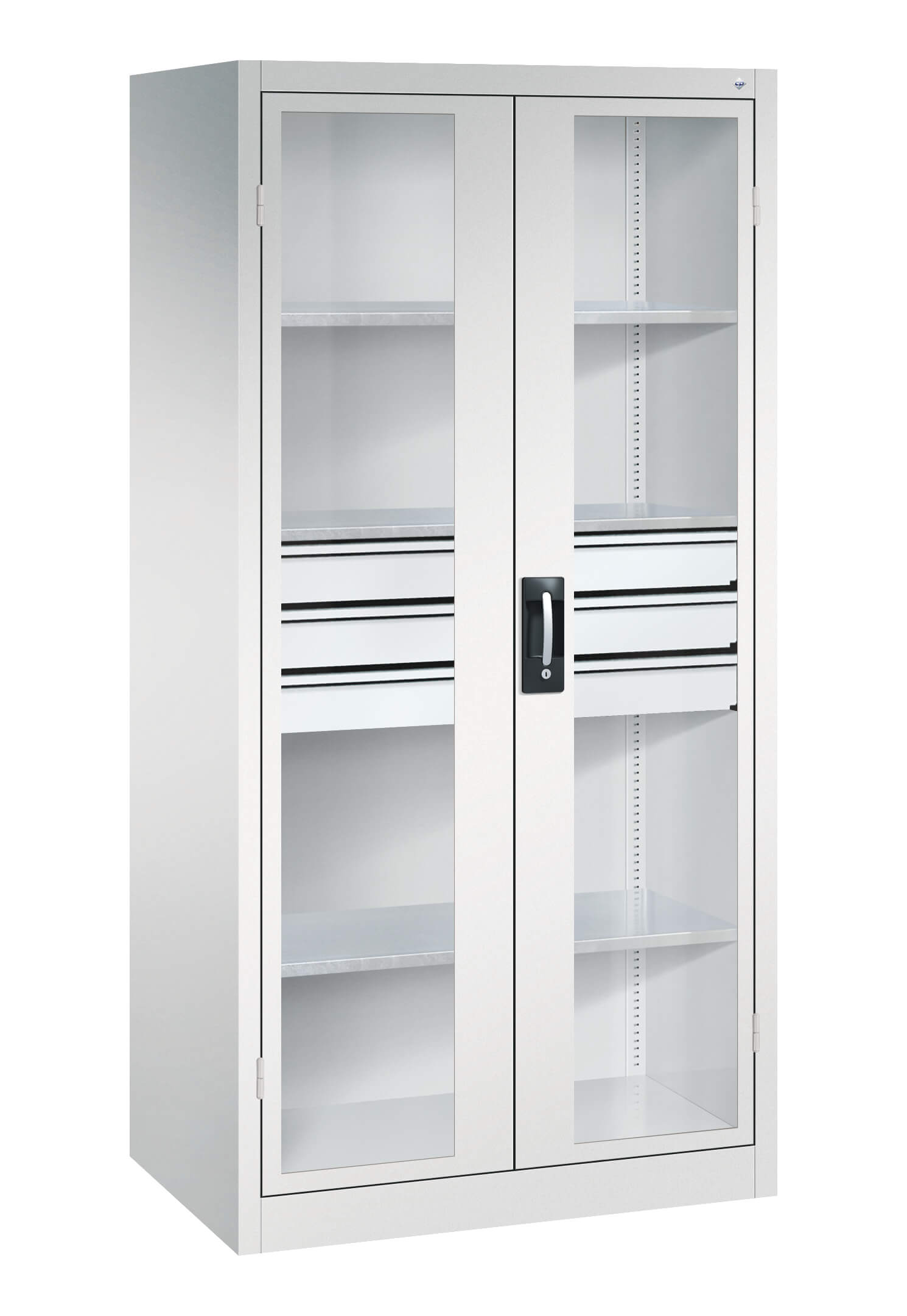 | + | Doors with viewing window for direct cabinet access, time and cost savings through better organization and overview |