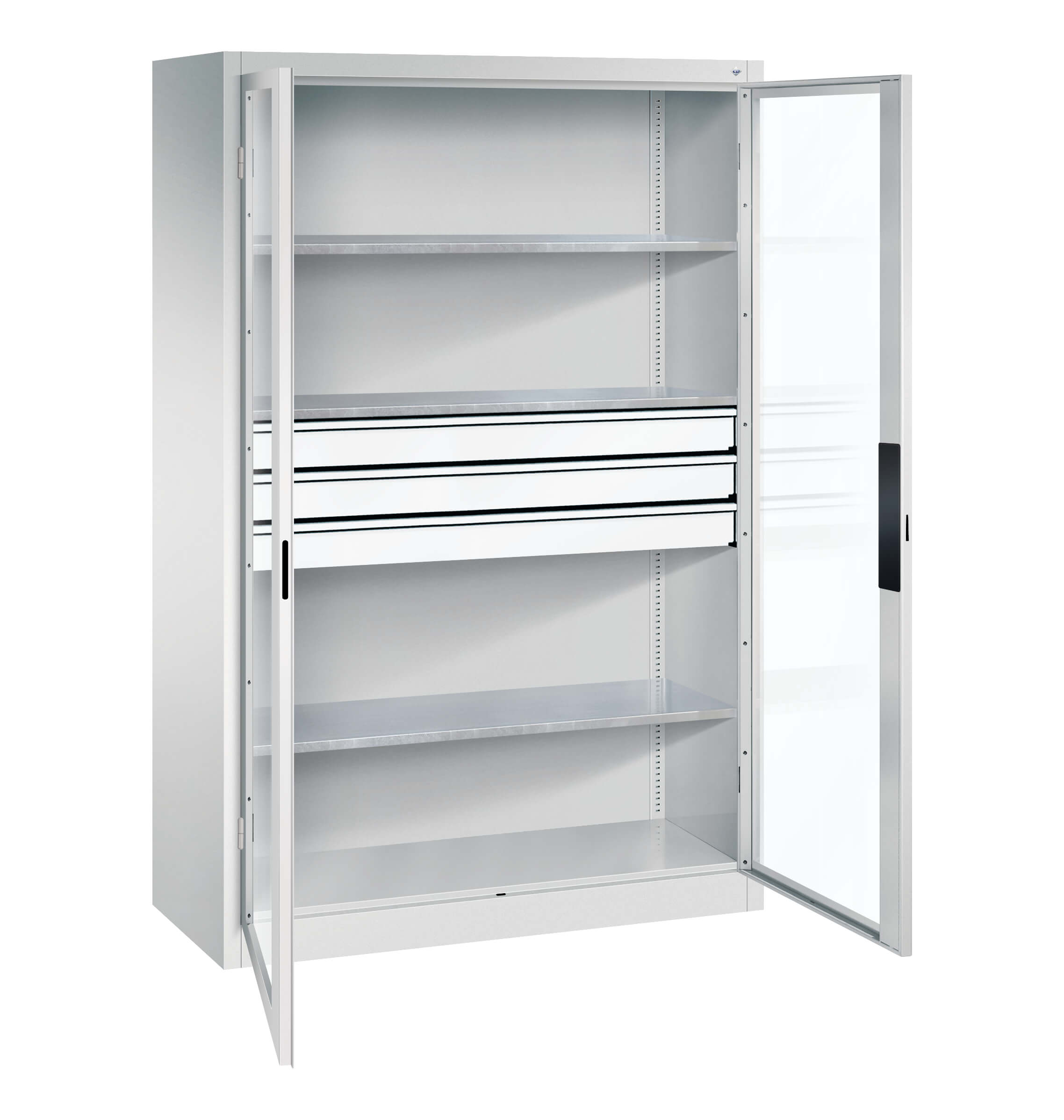 | + | Doors with viewing window for direct cabinet access, time and cost savings through better organization and overview |