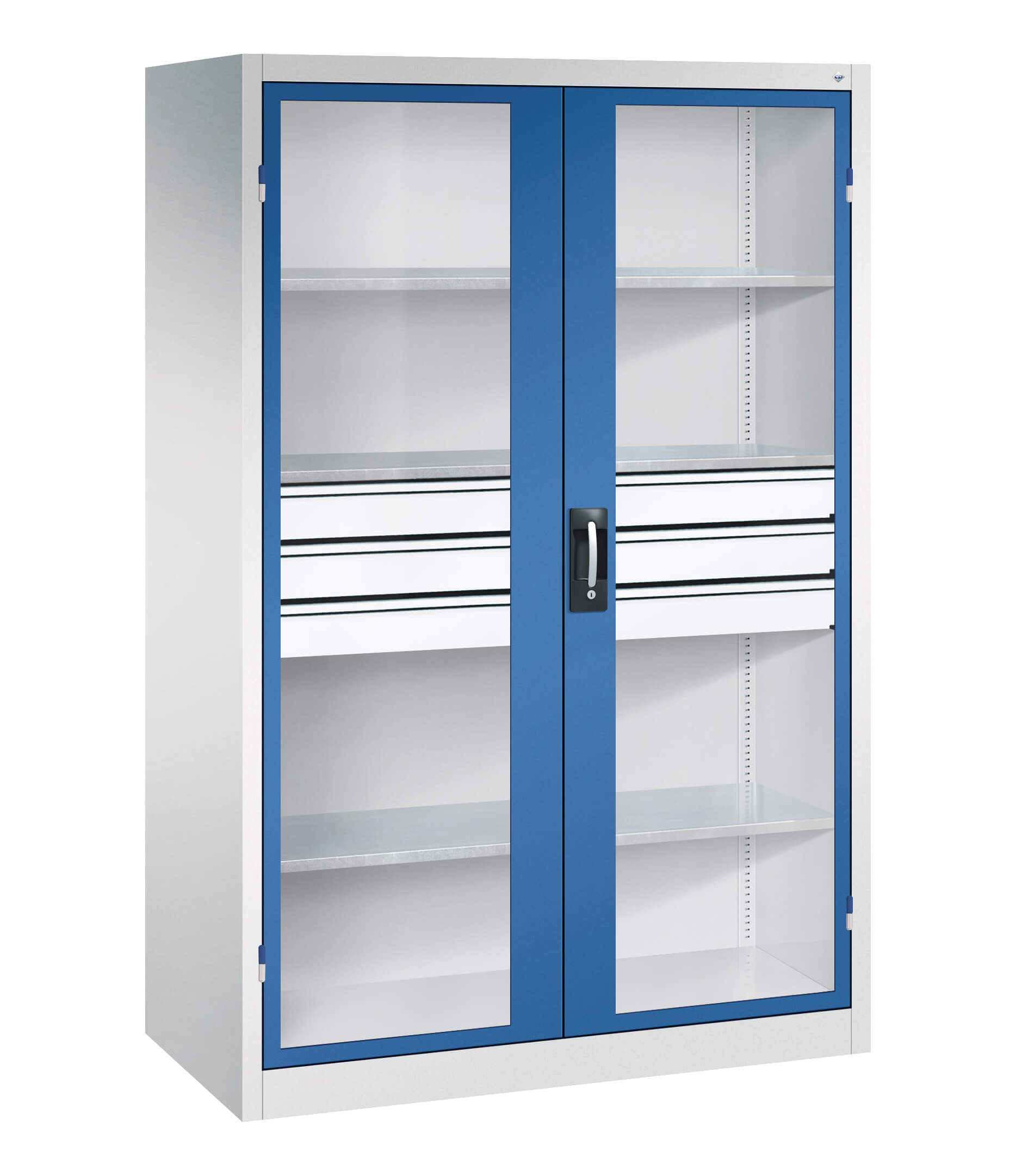 | + | Doors with viewing window for direct cabinet access, time and cost savings through better organization and overview |