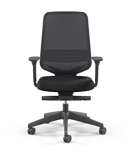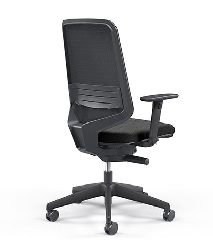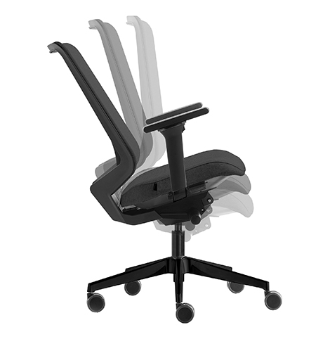 - Formschönes Kunststoff-Fußkreuz in Schwarz + Integrierte Synchronmechanik für Sitz- und Rückenlehne, 4-fach arretierbar